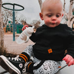 Stand out in a crowd AND keep comfortable with the Greedy Baby signature hoodie– a bold declaration of streetwise style and urban attitude. When your little one wears this hoodie, they’re not just making a fashion statement – they’re expressing a rebellious spirit and a fearless sense of individuality. Perfect parts organic cotton and bamboo, our hoodies are lightweight and incredibly cozy, merging the softness of our sleepers together with the durability that kids wear requires.