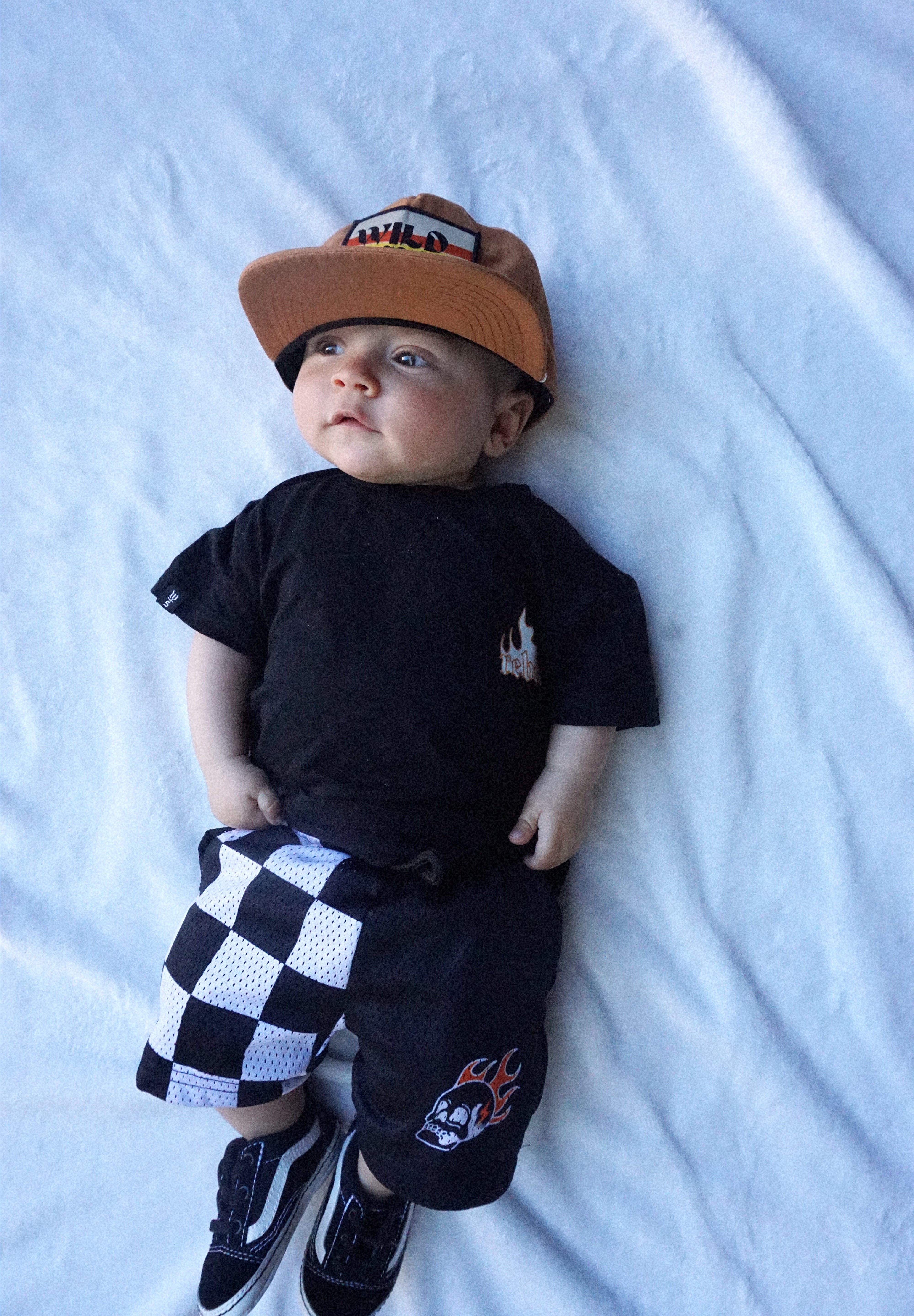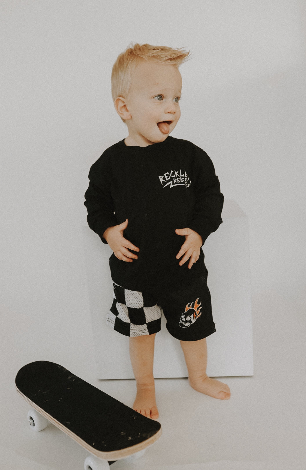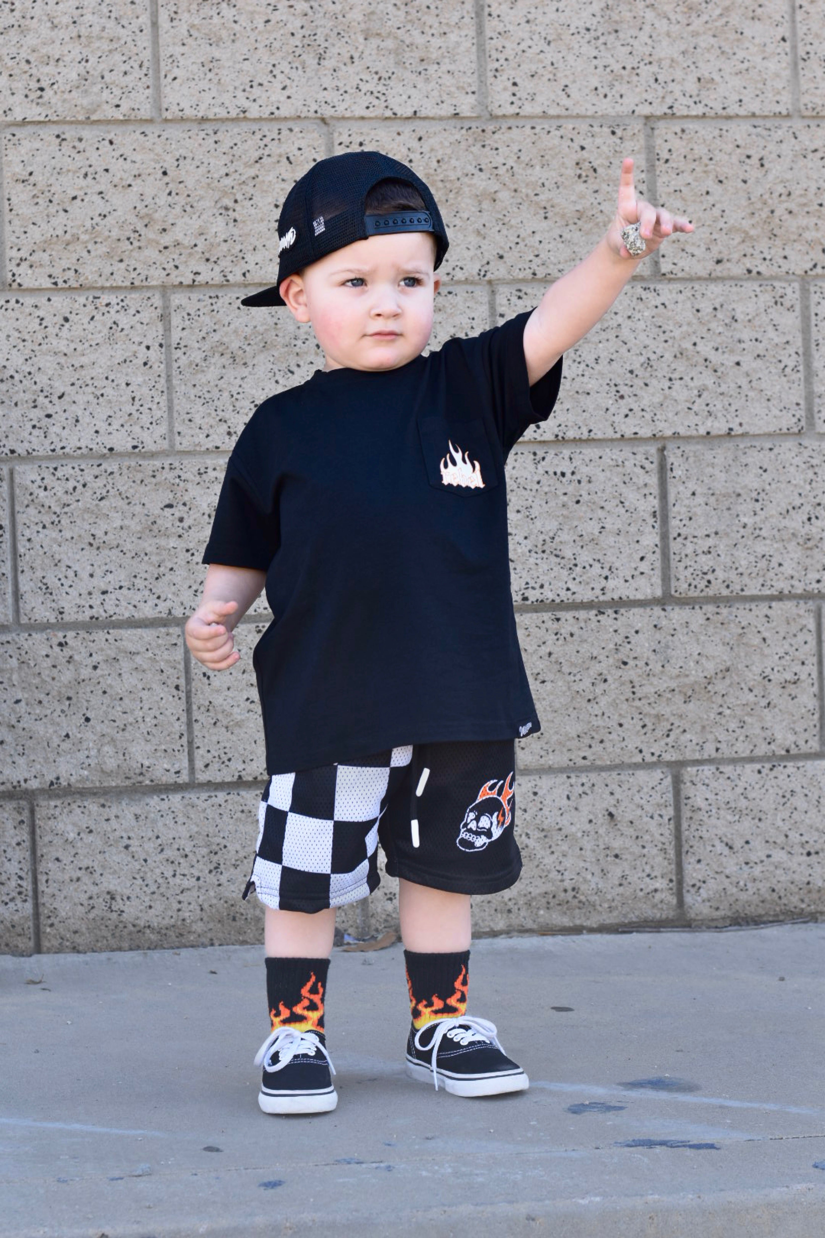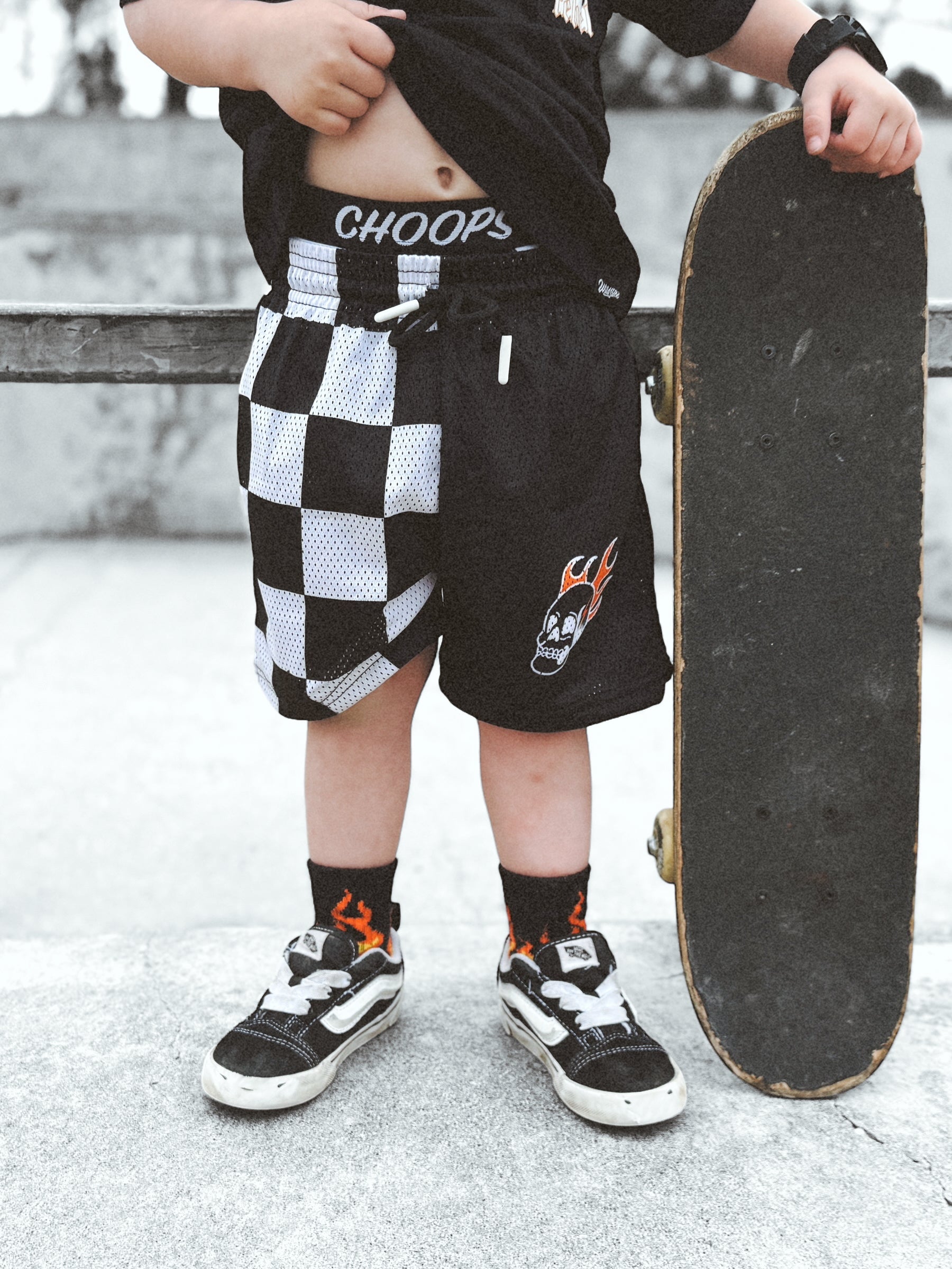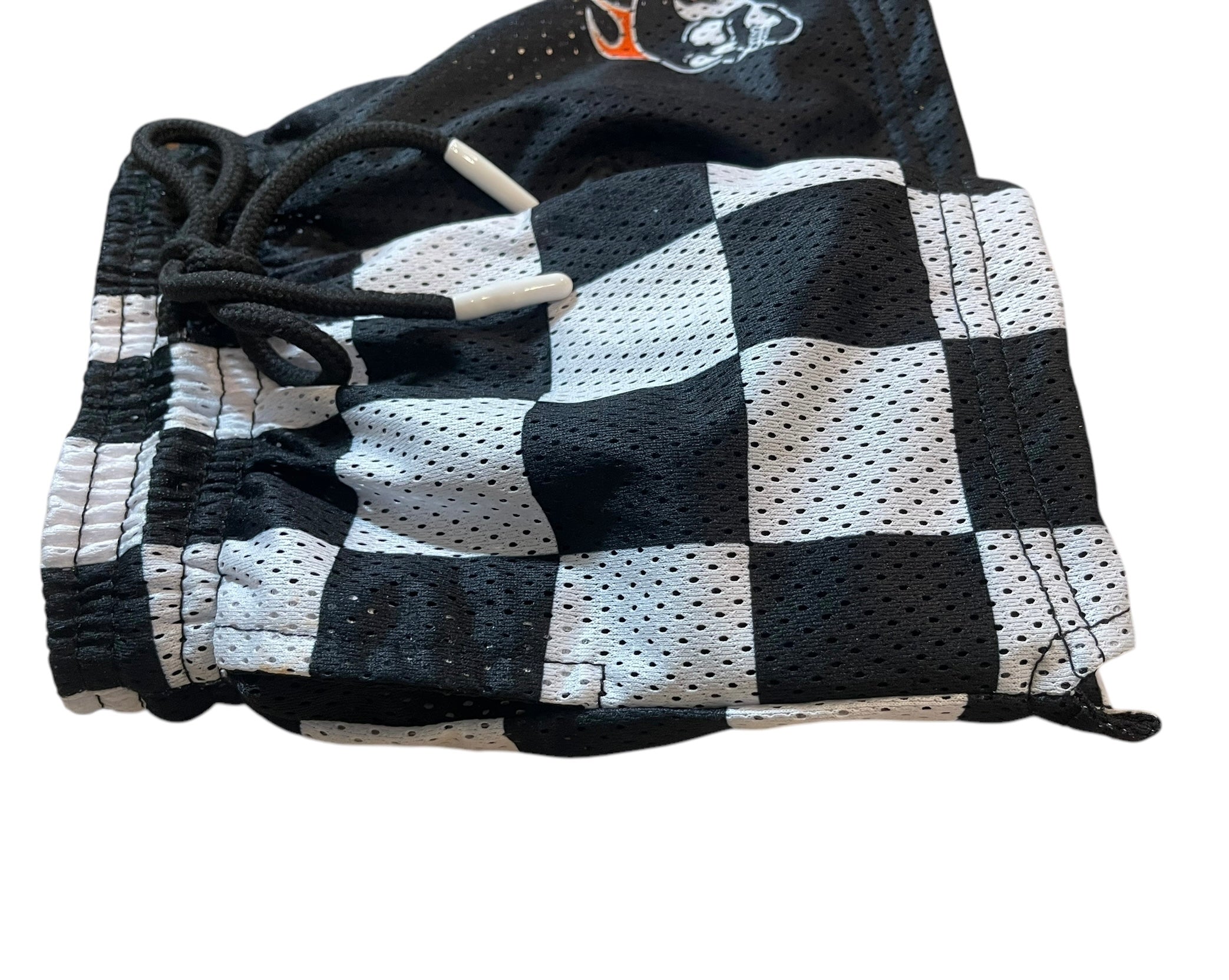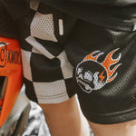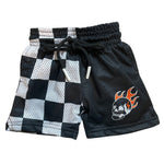 Get ready to do some Burn Outs (and turn heads) in our Burn Out Mesh Shorts. These double-sided mesh shorts offer the perfect blend of style and functionality, with a unique half black, half checkered design. Plus, with a functional drawstring and two side pockets, you'll have everything you need with these shorts!