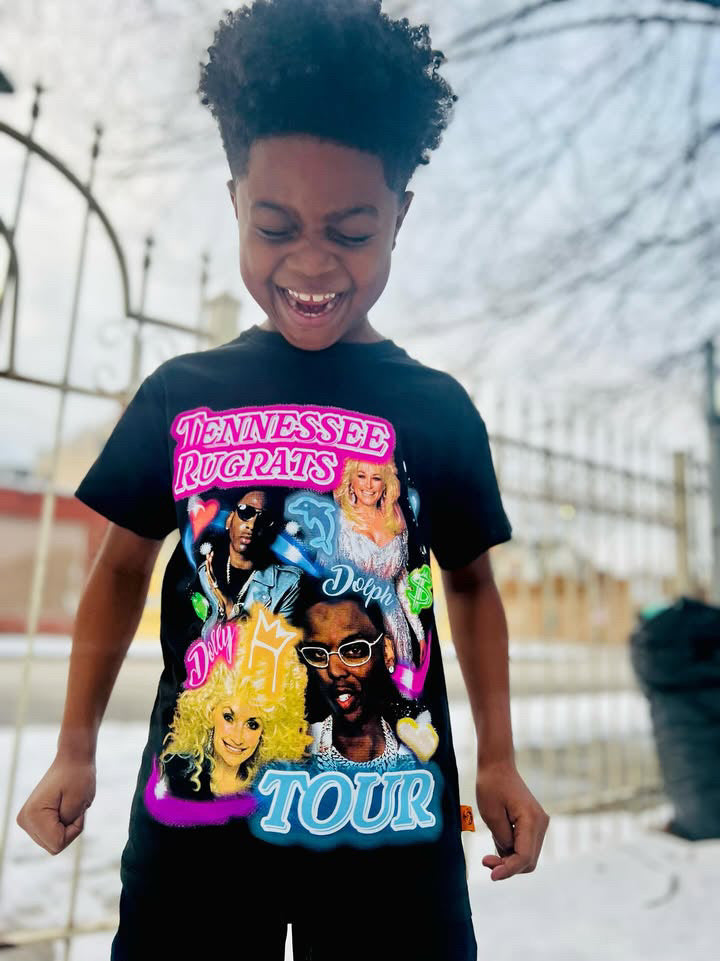 Our DOLPH x DOLLY Tee is an ode to two Tennessee legends— Young Dolph and Dolly Parton. Opposites attract in perfect 90’s pop star tee perfection. Buttery smooth and exquisitely soft, our t-shirts are a delight to wear, offering a sensory experience like no other. Say goodbye to scratchy fabrics and uncomfortable seams—we used the same ultra soft fabrics we use on our sleepers so your babe can be equally as cozy during the day as they are at night! This will be the softest t-shirt in your child’s collection, Greedy Baby guaranteed.
