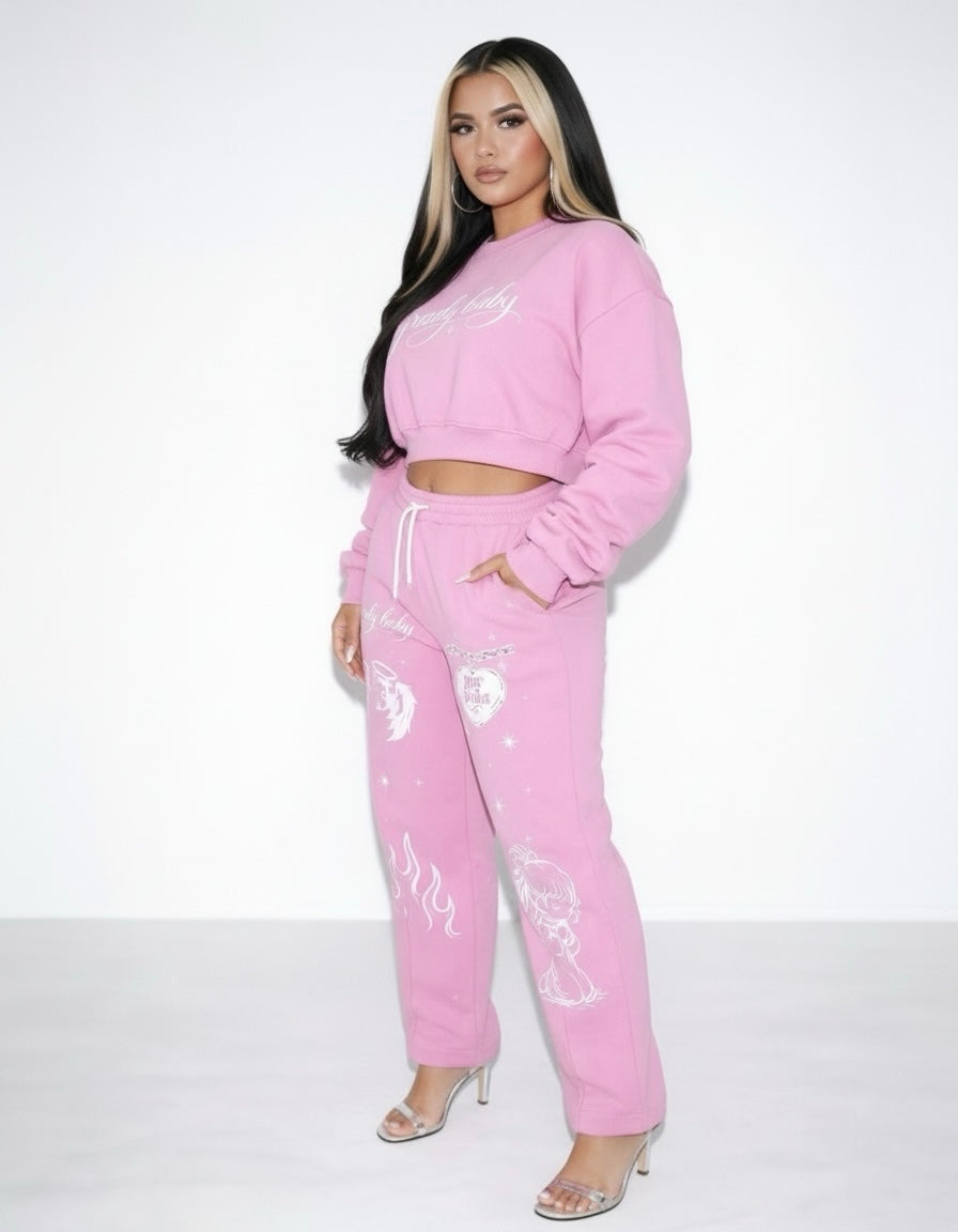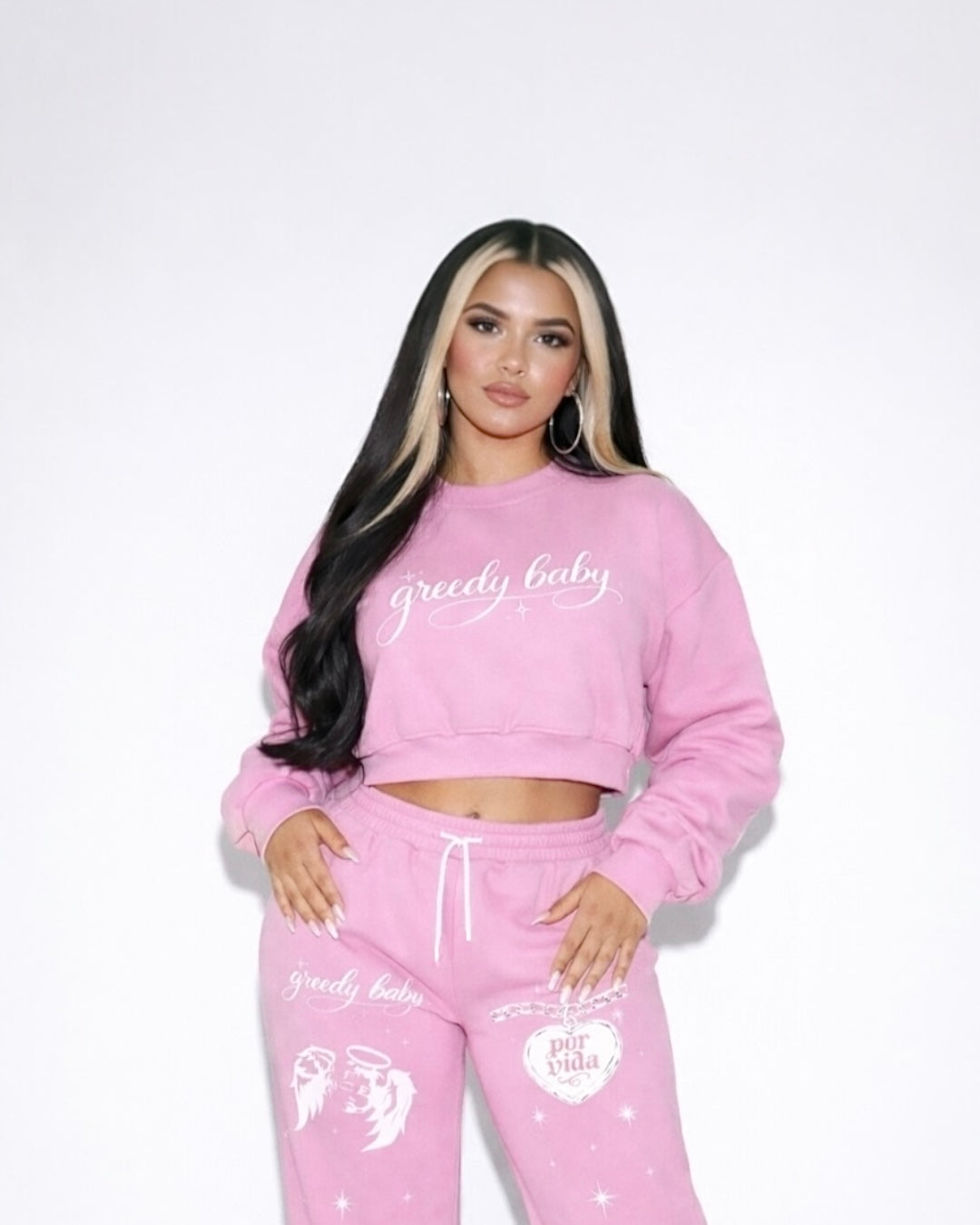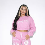 Cute, spoiled, and a little dangerous. The Greedy Baby Vintage Cropped Sweatshirt is giving soft angel energy with a baddie attitude. Made in a washed vintage pink, it has that perfectly worn-in look like your favorite sweatshirt — but way hotter.