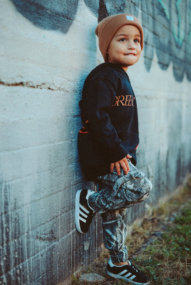 Stand out in a crowd AND keep comfortable with the Greedy Baby signature hoodie– a bold declaration of streetwise style and urban attitude. When your little one wears this hoodie, they’re not just making a fashion statement – they’re expressing a rebellious spirit and a fearless sense of individuality. Perfect parts organic cotton and bamboo, our hoodies are lightweight and incredibly cozy, merging the softness of our sleepers together with the durability that kids wear requires.