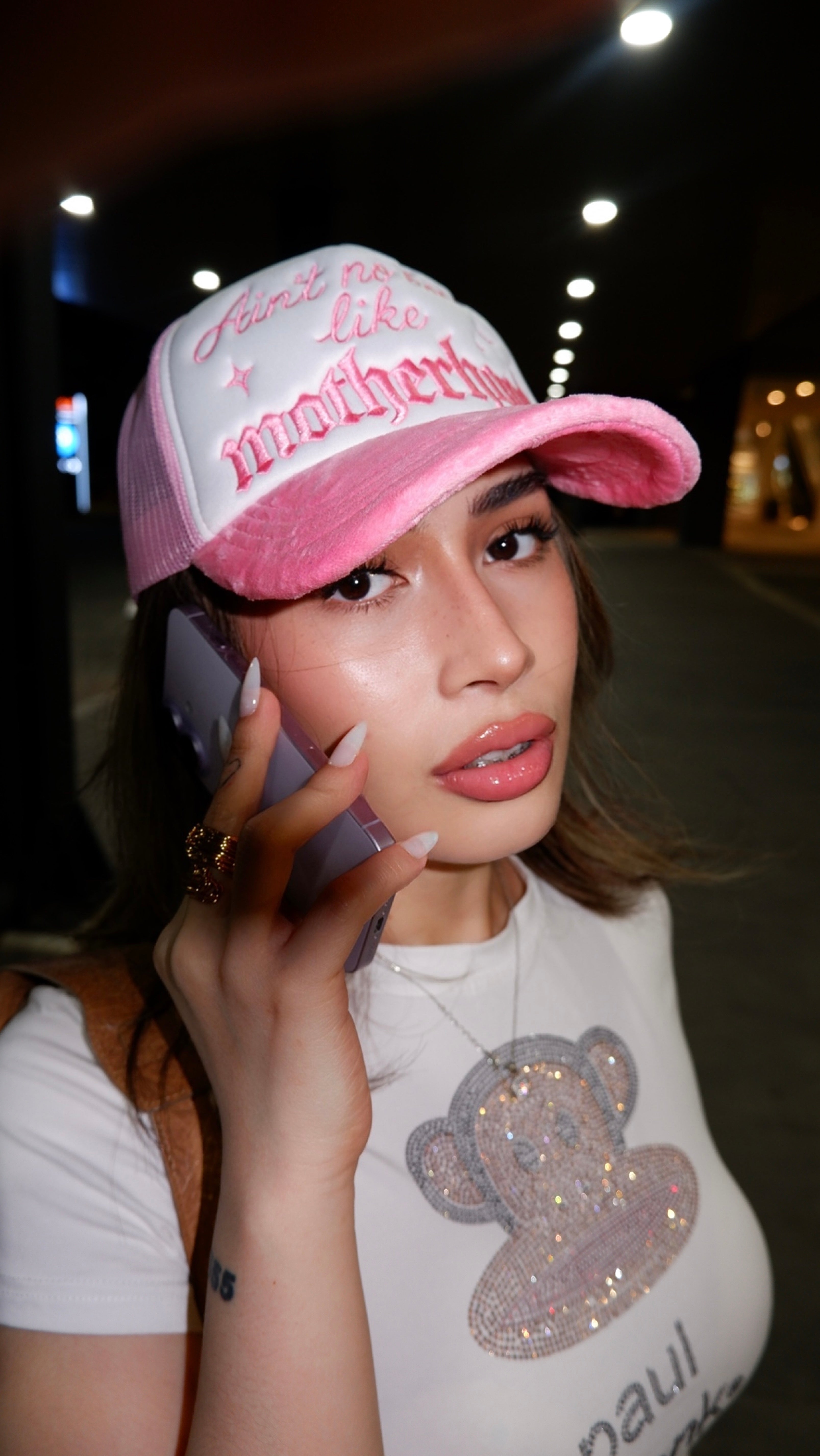 For the bougie badass mamas — the Ain’t No Hood Like Motherhood Trucker Hat is your new crown. Dripping in retro luxury with a velour bubblegum pink brim and embroidered gothic script, this hat gives main character energy with a side of “don’t mess with my vibe.” It’s equal parts edgy streetwear and glam-mom attitude — because motherhood never stopped a real one from looking fly.