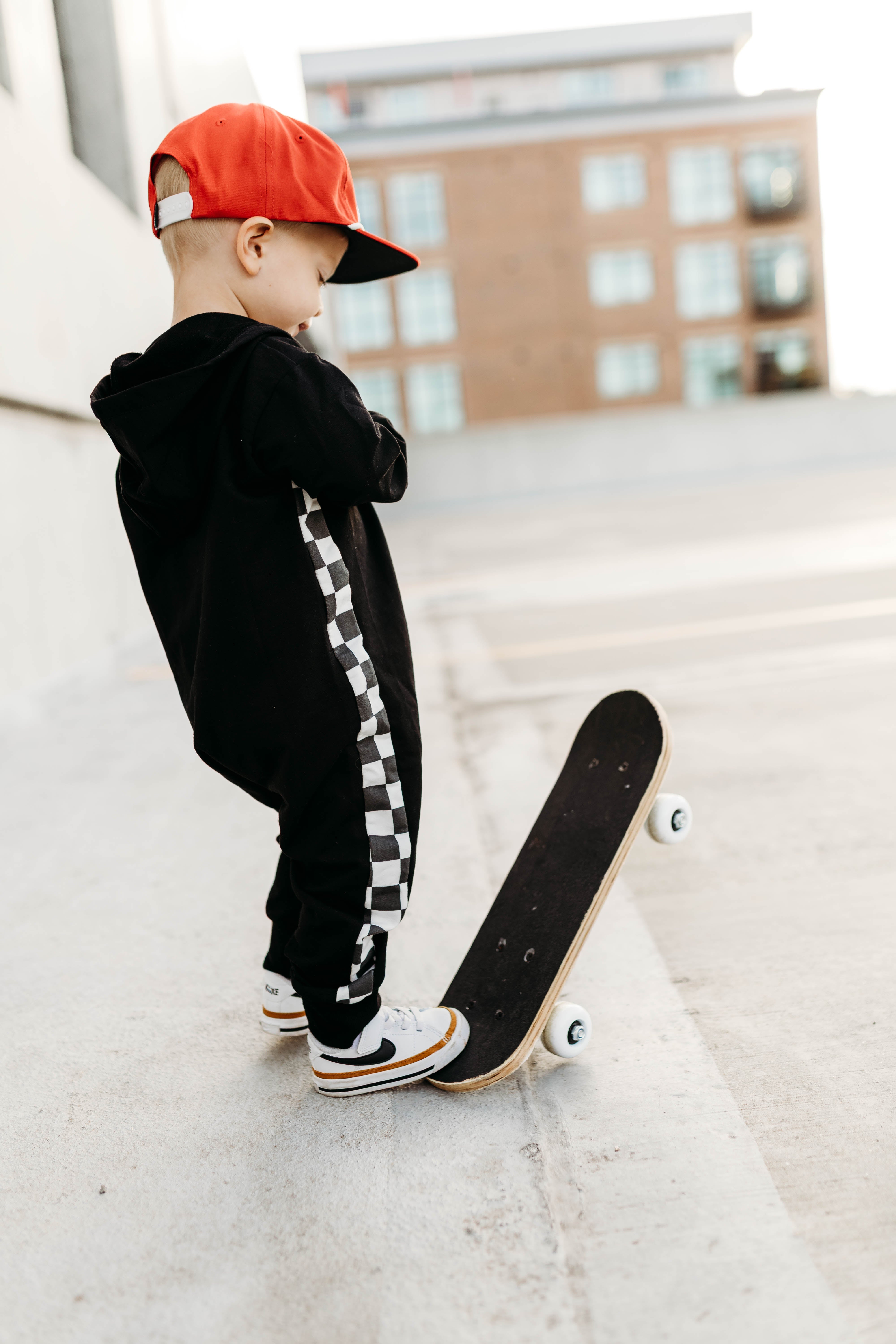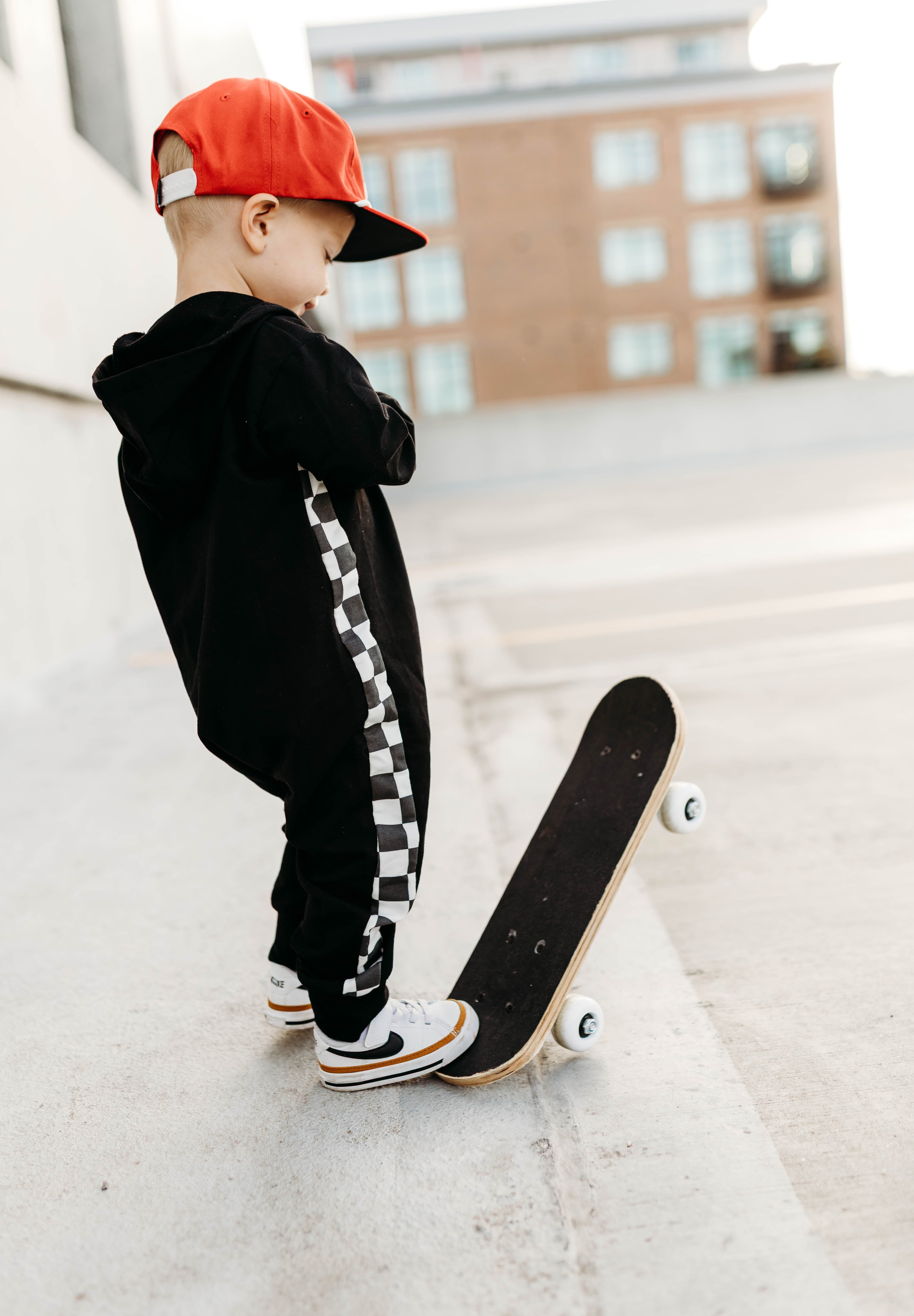 Zip Up Hooded Checker Romper