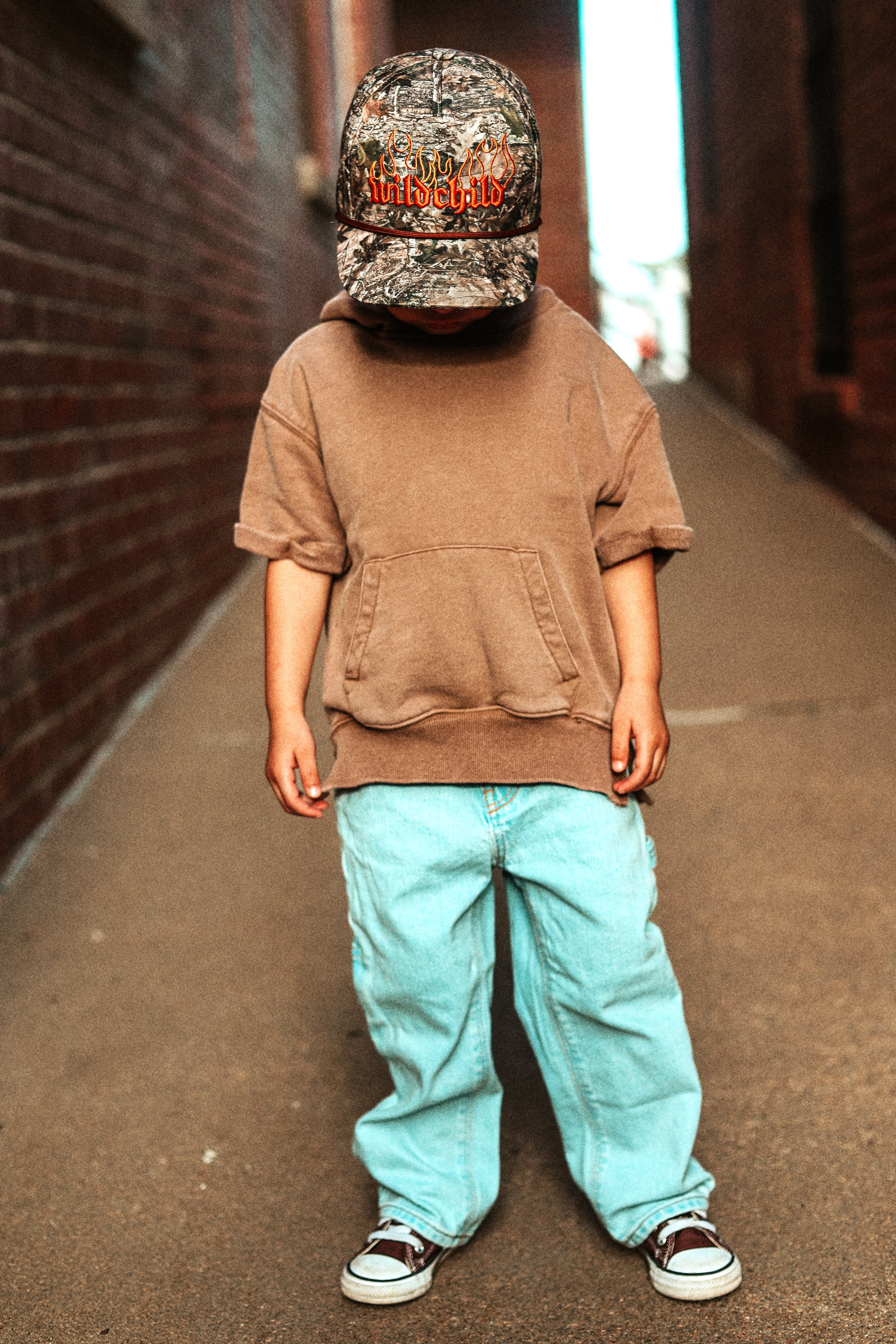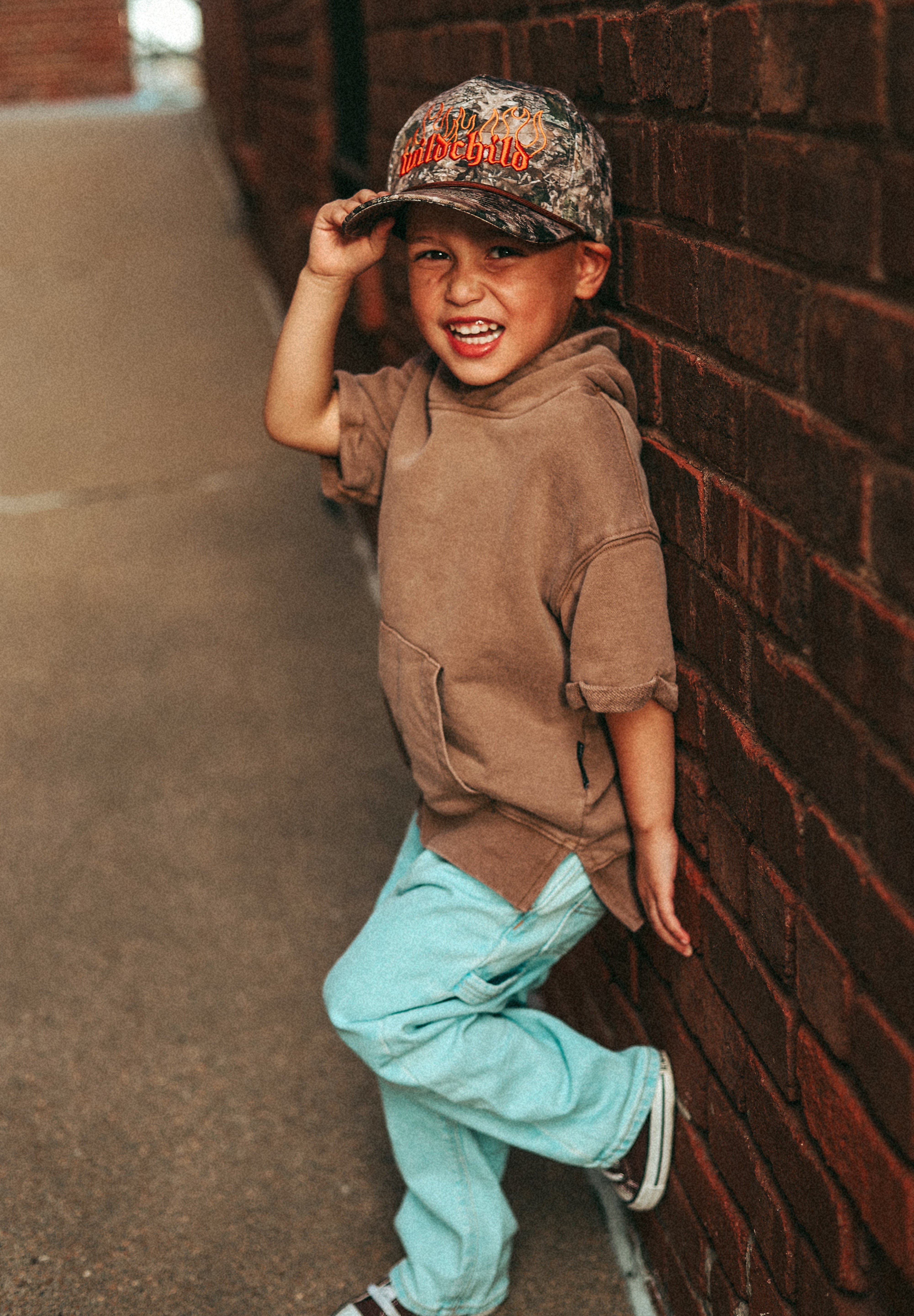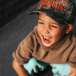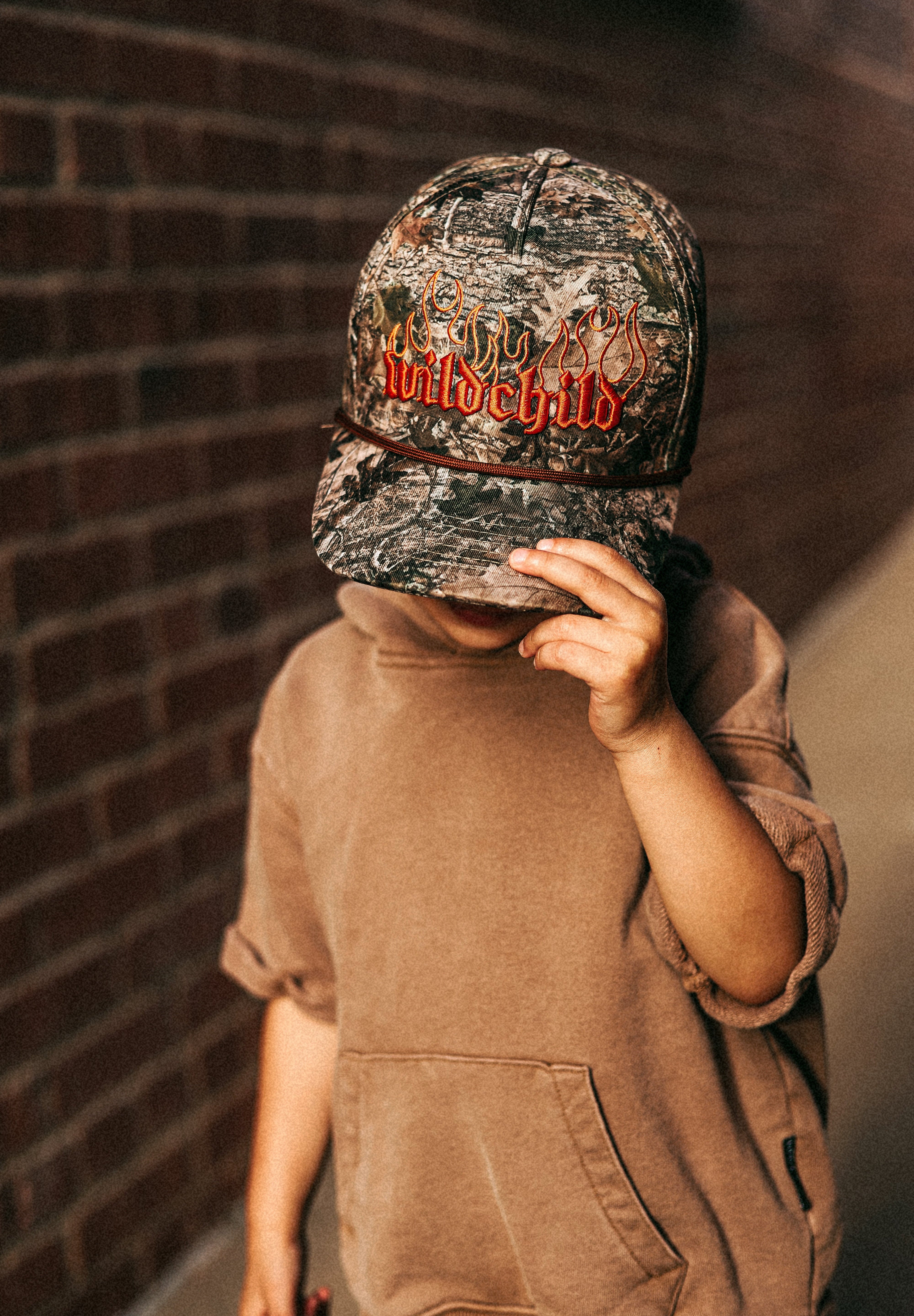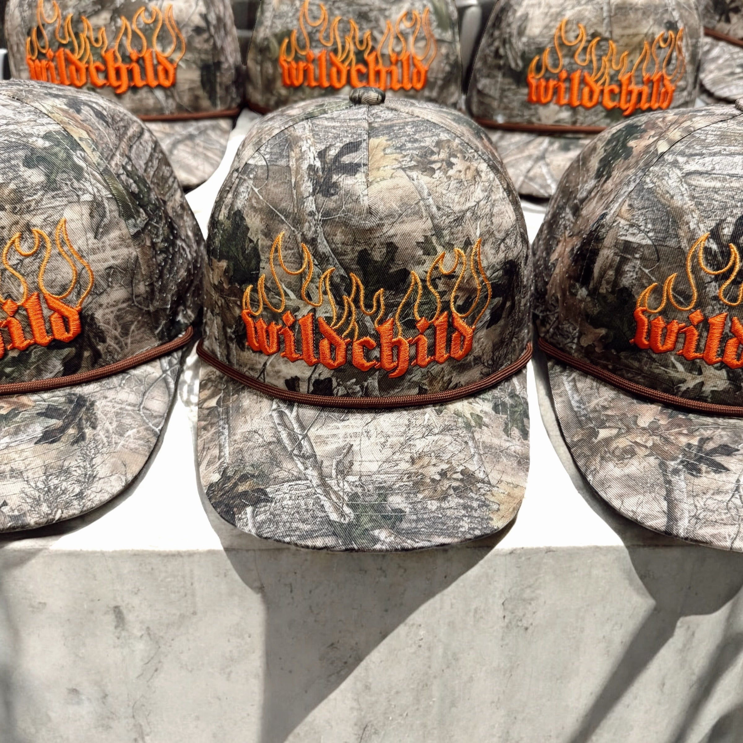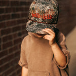 Our Wild Child Camo Hydro Hat was made for you! This real tree camo hat features an edgy design of the words "wild child" engulfed in flames. Stay cool and look even cooler with this waterproof hat. SnapBack function to adjust sizing.